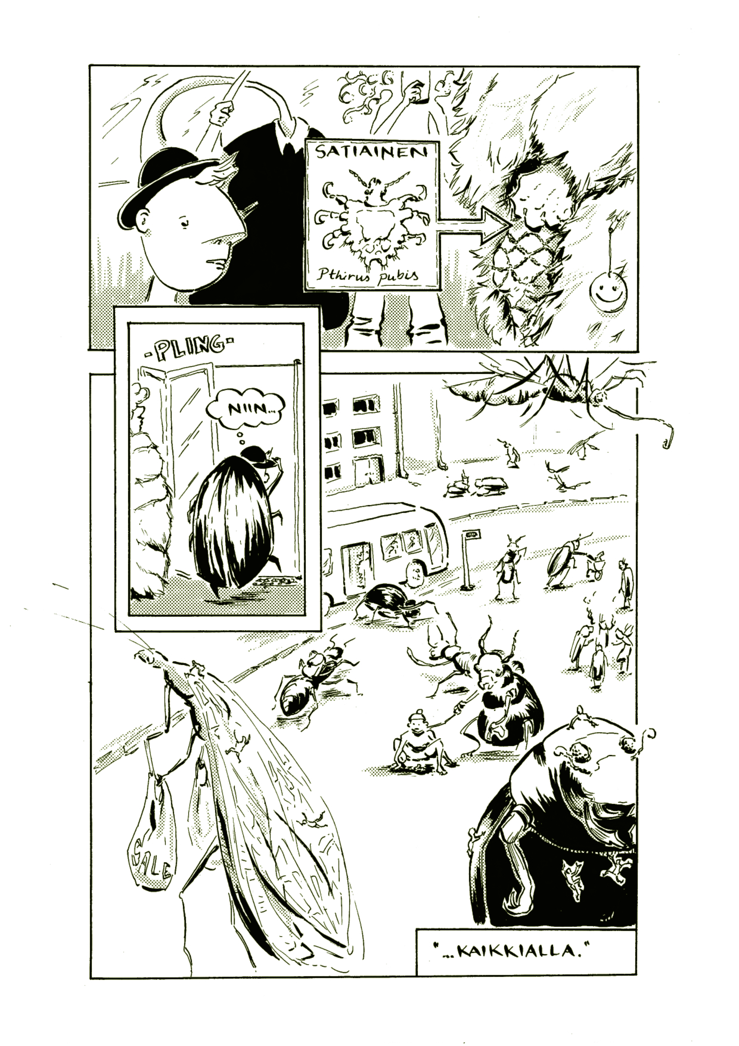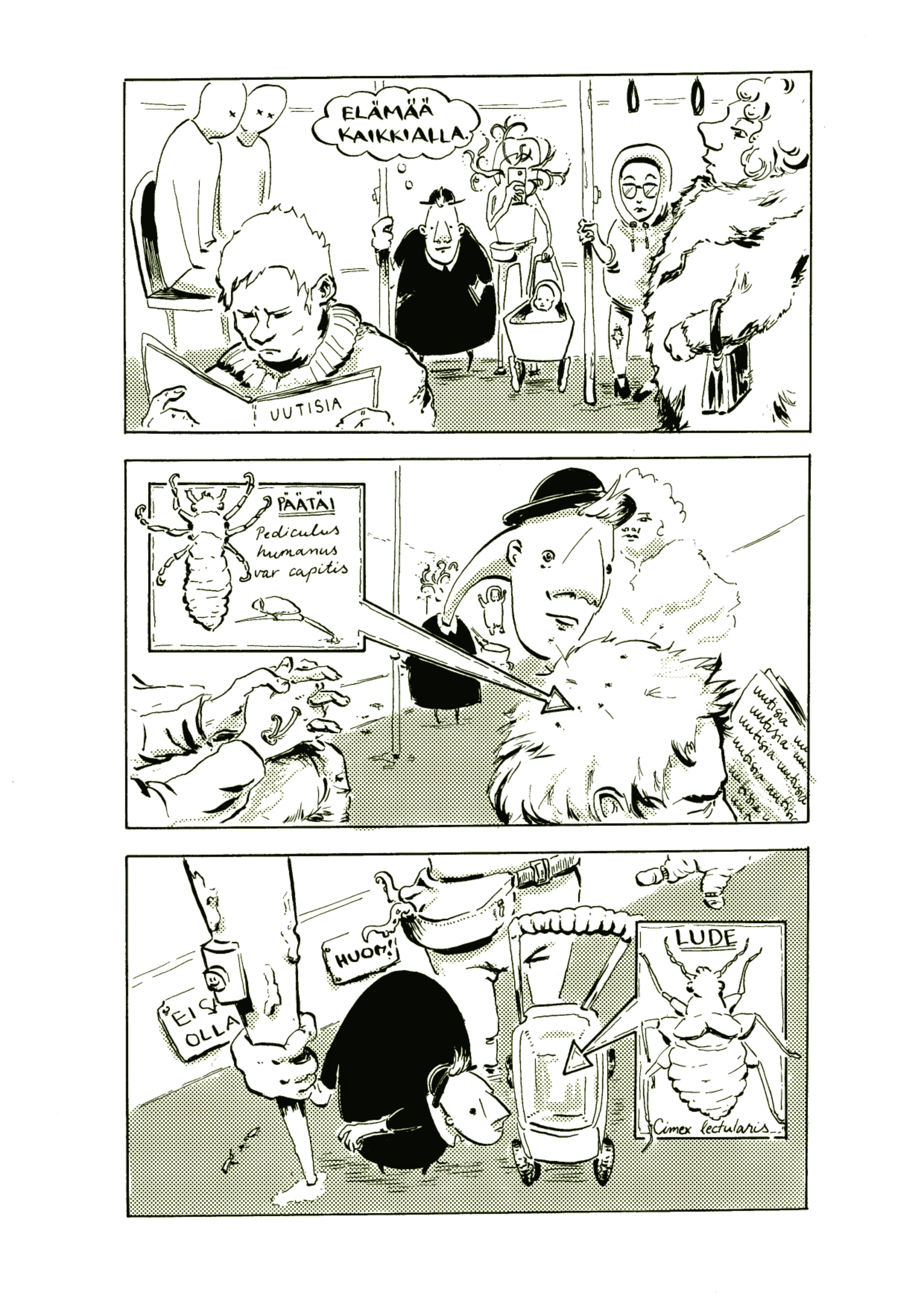 Pg 1: [thought] ”Life everywhere” / [text] Headlice / [text] Bedbug