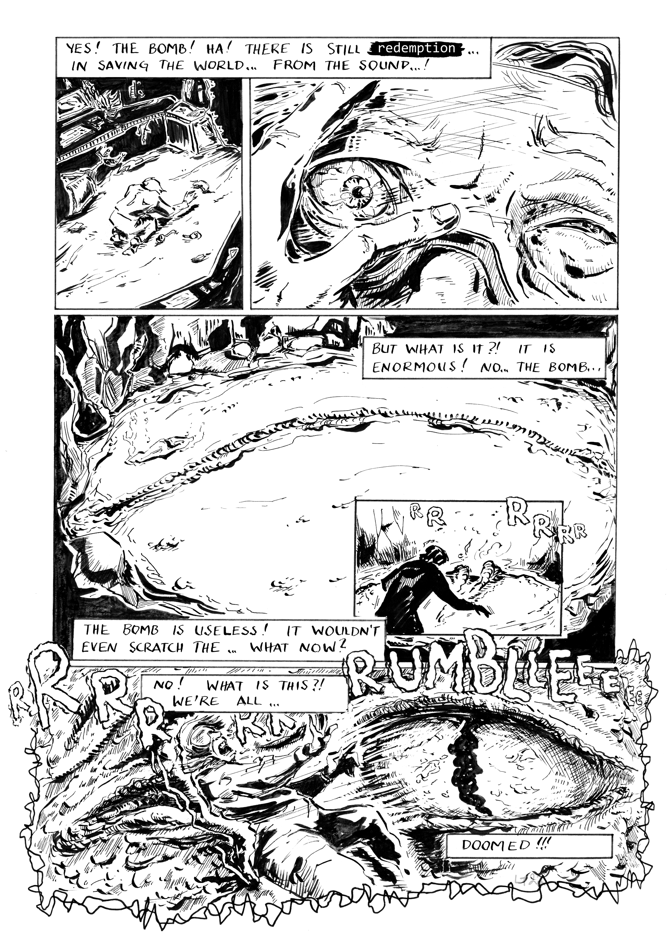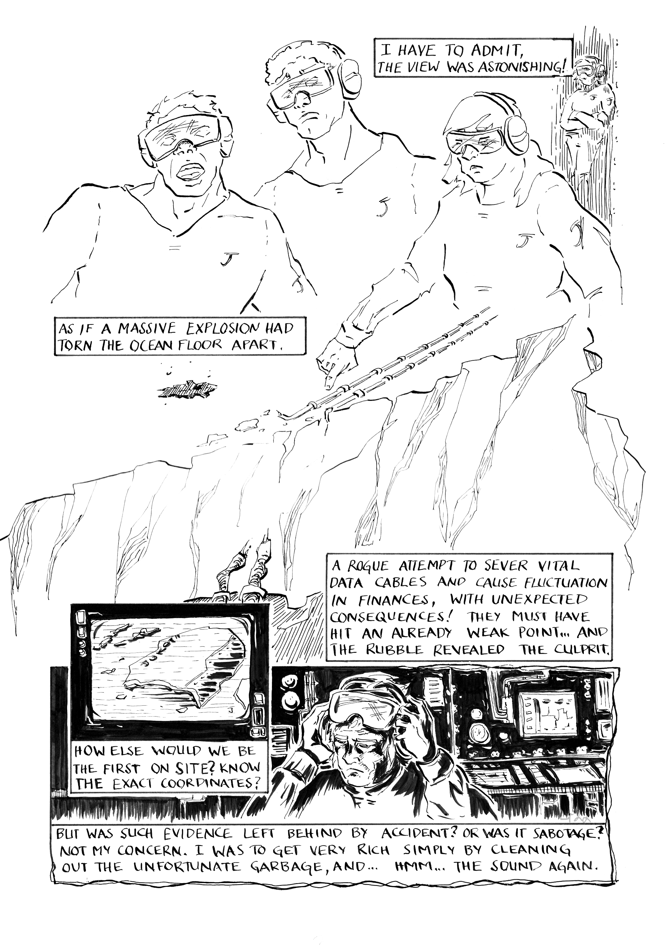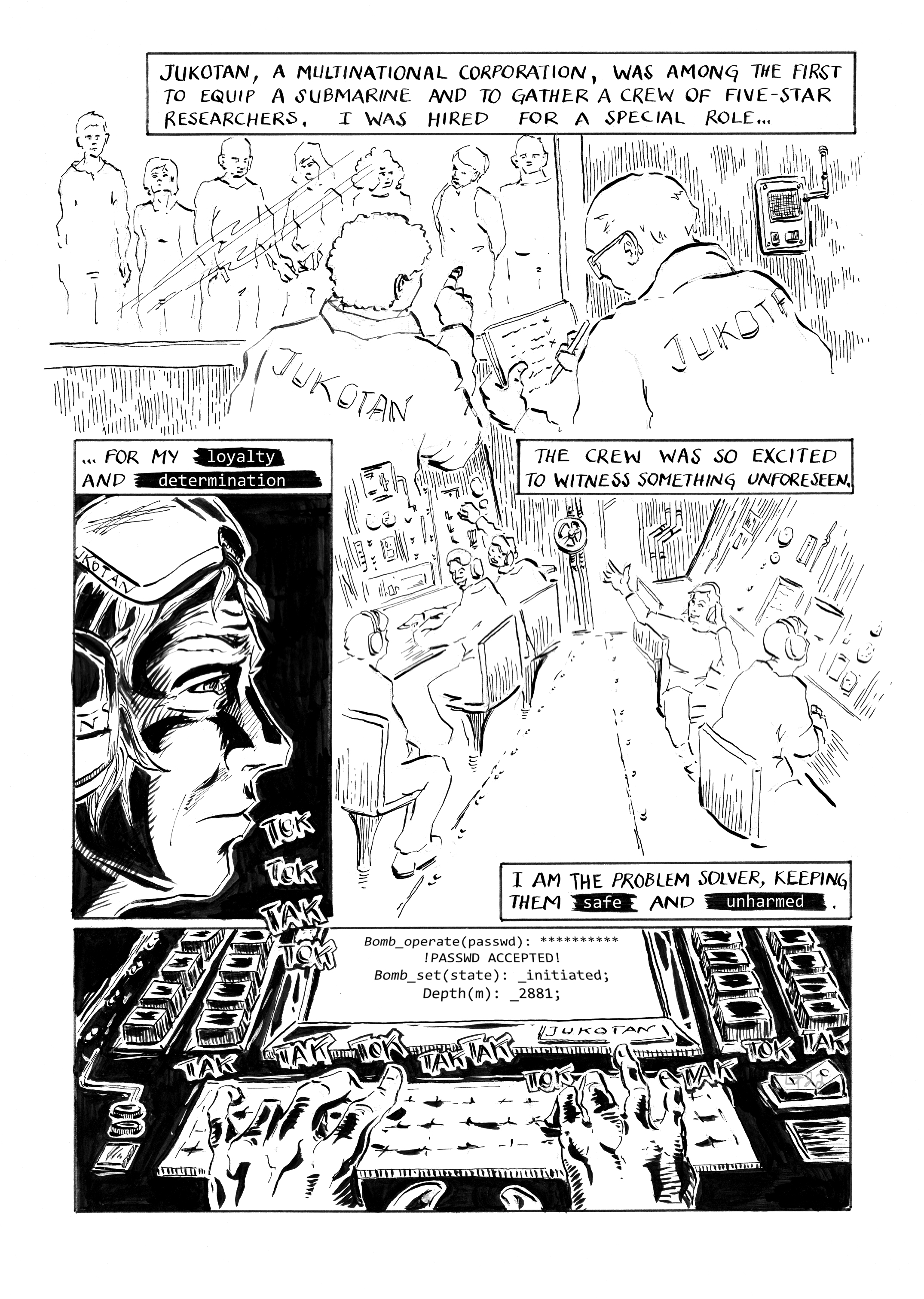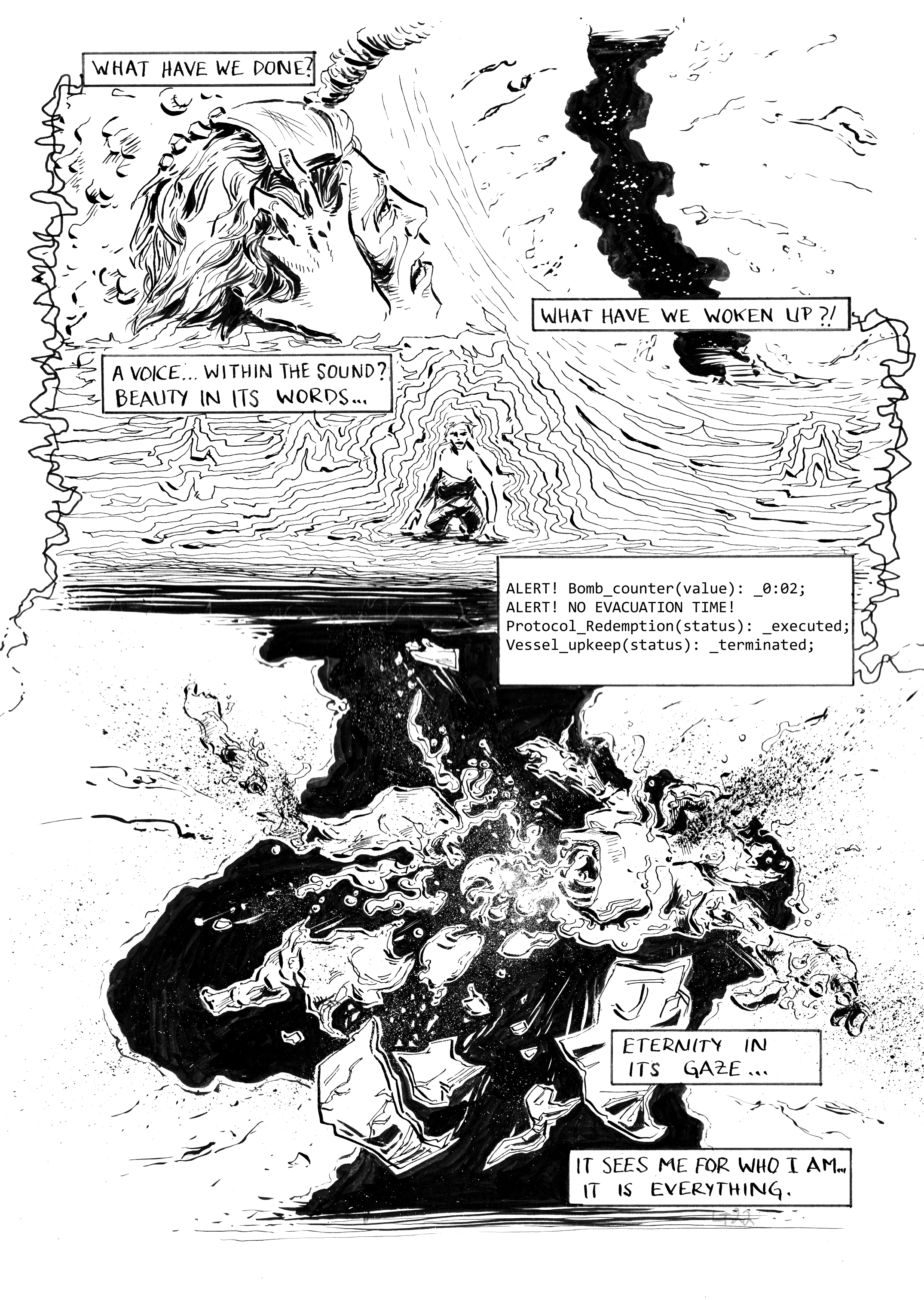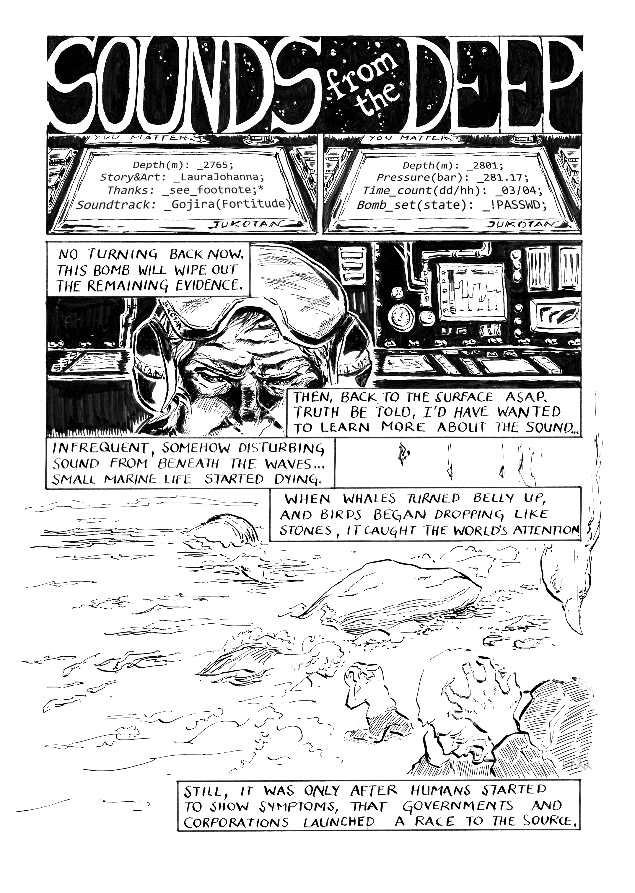 Sounds from the Deep was created in March – October 2022. It is a short story of confusion, despair, and facing oneself. With a Lovecraftian twist. Originally, I thought of sending it to a sci-fi comic antology, which collected max 8 pages long stories. Even though my story wasn’t finished in time, I still held on to the 8 pages limit.