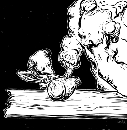 It was time. The little demon was oh, so nervous! Chanting the unholy verses carved onto the vessel, and hearing the high pitched melody of backwards played nightingale song, that the guide was conjuring with a mercury flute, the little demon saw the fabric of existence start to twist and turn and tear apart… and Light was leaking from these ruptures straight into the vessel!