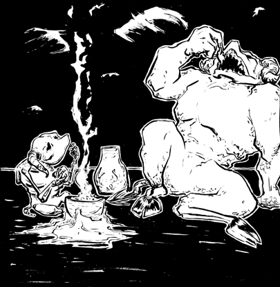 The road to harvesting site was long, and at midnight the little demon and their guide would rest and enjoy a hefty meal. Bats were shrieking a joyful tune, but the smell of food cooking over lava mold made the little demon a bit homesick.